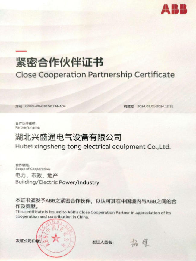 ABB紧密合作伙伴证书