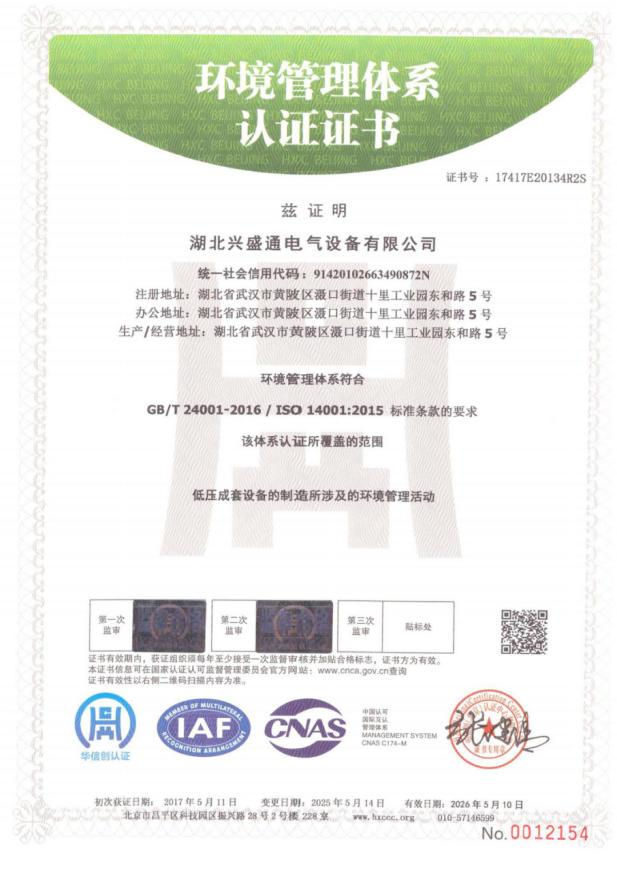 环境管理体系认证证书