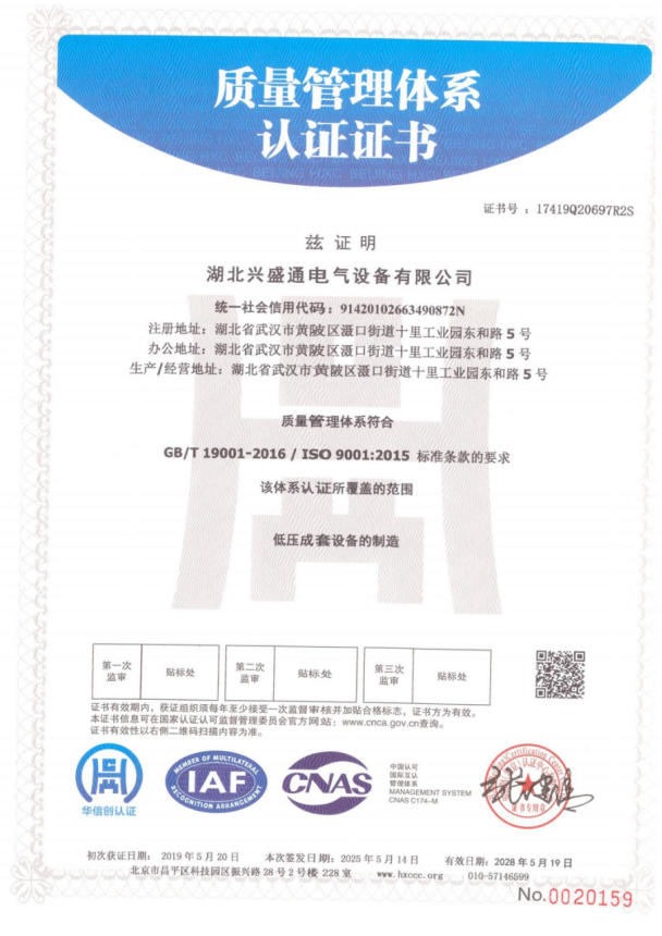 质量管理体系认证证书