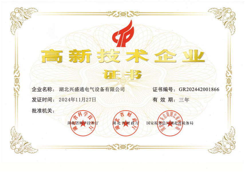 高新技术区证书