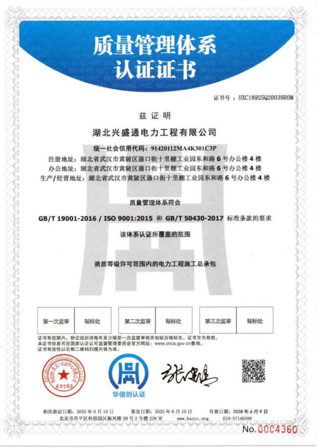 质量管理体系认证证书